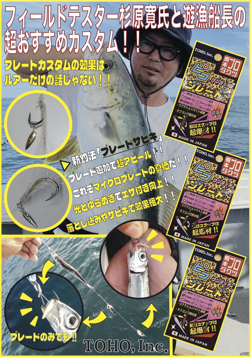 ●以下は一部の使用例ですが、特にマイクロメタルジグへの装着はビギナーの方でも簡単に多種多様な魚が釣れるようになるほどブレードとの相性が良く、ジョイントされたブレードの動きも相まってポテンシャルが大幅に引き上げられる模様です。