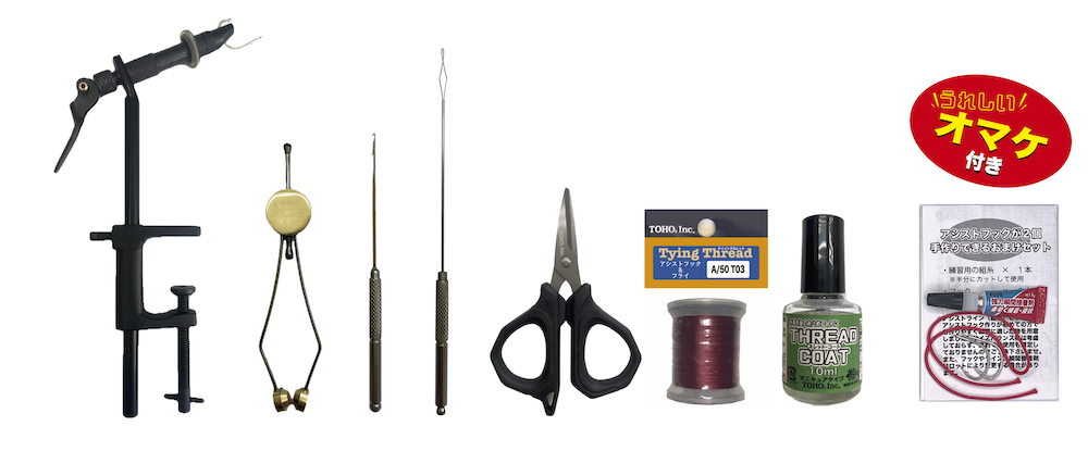 手作りアシストフックに必要なツールセットです。このツールがあれば効率よくストレス無くアシストフックが作成可能です。