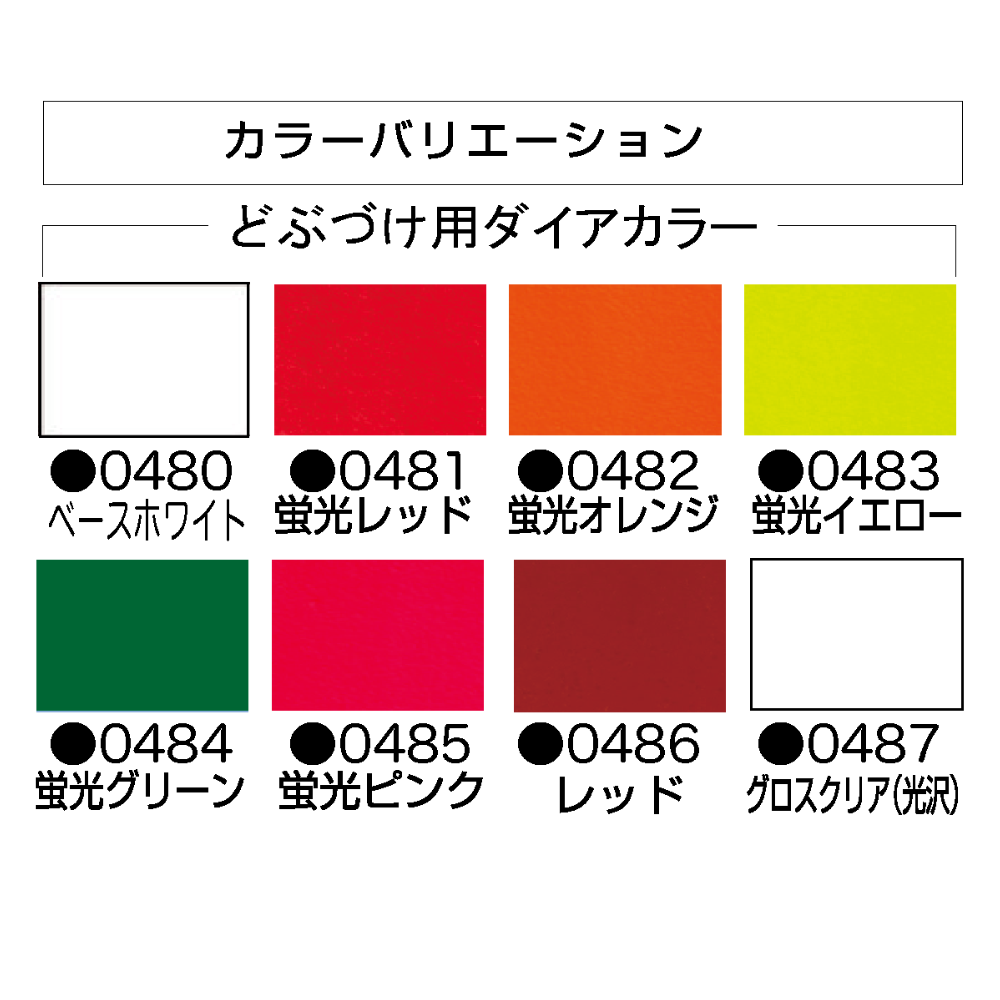 NO.0480/ベースホワイトNO.0481//蛍光レッドNO.0482/蛍光オレンジNO.0483/蛍光イエローNO.0484/蛍光グリーン