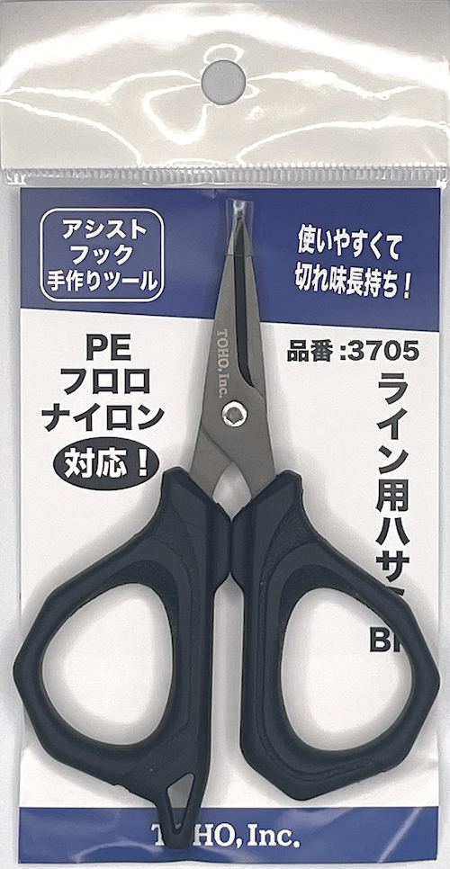アシストフックやフライなどのタイイング時に使用するハサミです。特にアシストラインなどは一般的なハサミでは切れにくいので非常に便利です