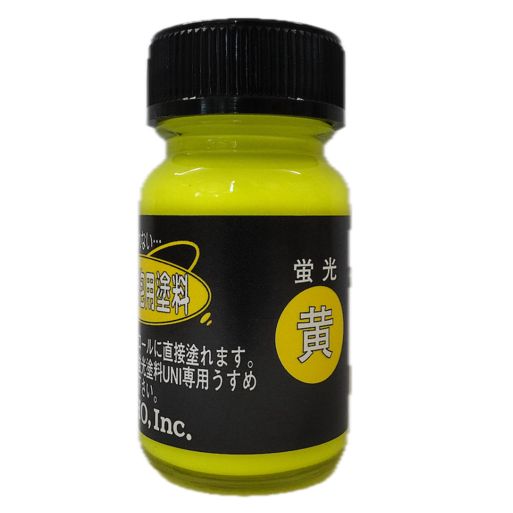 ※塗料に対して20%〜30%程度の「蛍光塗料UNI専用うすめ液」で希釈し塗装すれば、重ね塗りする回数は増えますが、逆行時に視認性が上がり見えやすくなる場合があります(色に関することなので個人差があります)。