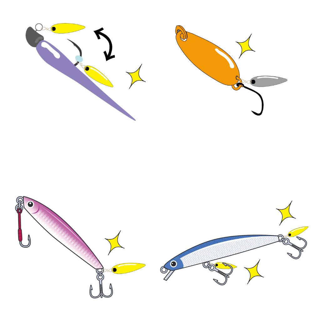 これまでサイズ的に取り付けられなかった小型メタルジグやジグヘッド、スプーンなどの小型のルアーを対象とした極小ブレードです!