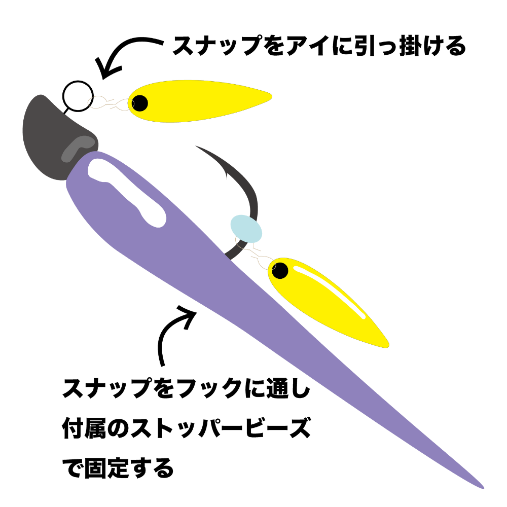 ●アジング・メバル・キスなどのライトゲームやマイクロジグ、スプーンなどにセットしてご使用下さい。また、落とし込み仕掛けにつけることでサビキブレードとしてご使用いただけます