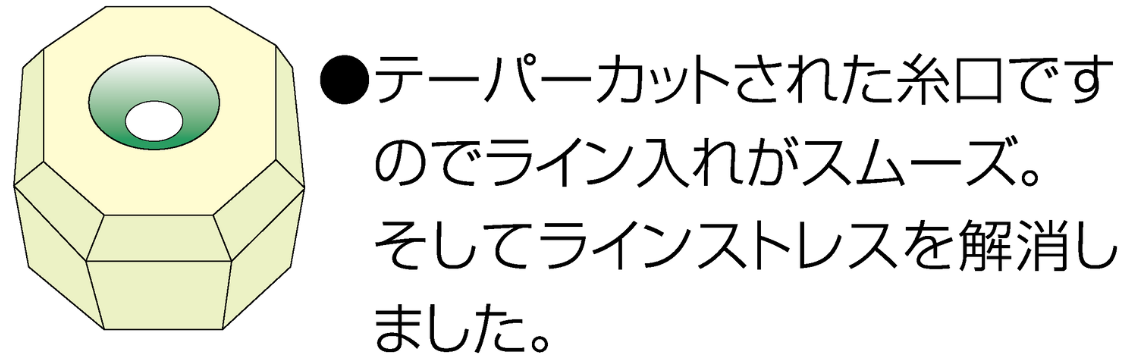 糸口にはテーパーカットが施されライン通しがスムースに!