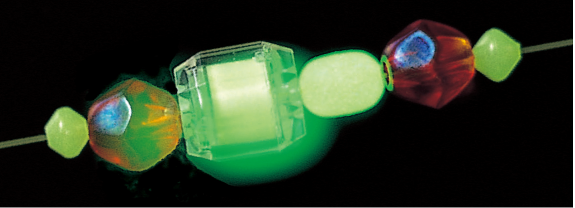 ●長残光性蓄光素材LumiNovaを採用した夜光うきゴムです。太陽光やライトの明りから紫外線を吸収し、フル蓄光して連続8時間発光します。