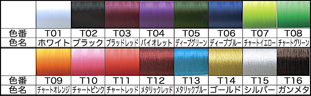 色の変化がほとんどないもの:T01、T04〜T16