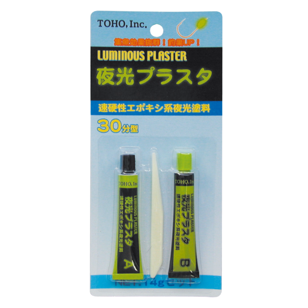 | No.0253/夜光グリーン15gセット | A液とB液を同量絞り出して混ぜると20℃で約30分で硬化が始まります。 約60分で実用強度に達します。 | チモトやウキ、ルアーなどの目玉やボディー、スプーンなどにお好みの量、大きさでご使用ください。また、竿先などにも目印としてご使用いただけます。 |