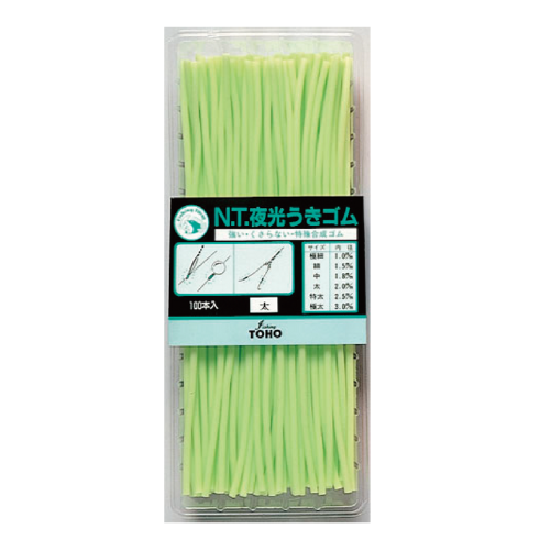 特殊合成ゴムを使用しておりますので、強くてよく伸び、夜光による集魚効果も狙えます。
